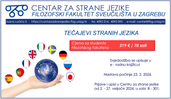Centar za strane jezike Filozofskog fakulteta organizira tečajeve stranih jezika.